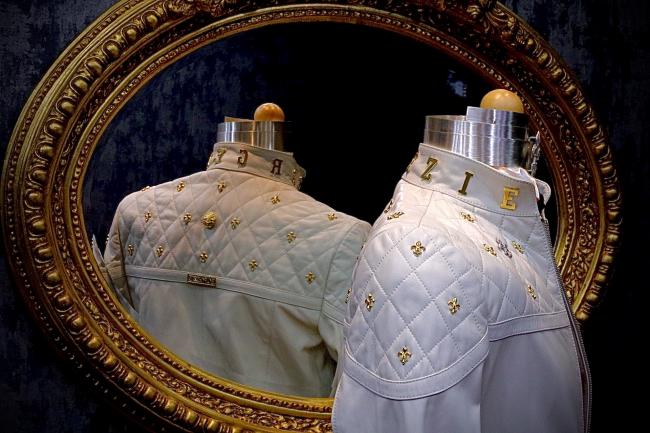 All jackets have been studded with 30 solid 18 carat gold or platinum Fleur-de-Lis motifs, plus a special edition 18ct solid gold & diamond encrusted Fluer-de-Lis motif on the right-hand shoulder, to match the brogue shoes.